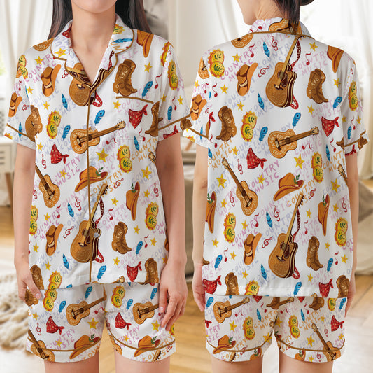 Cheerleader AOP Satin Short-Sleeve Pajamas Set