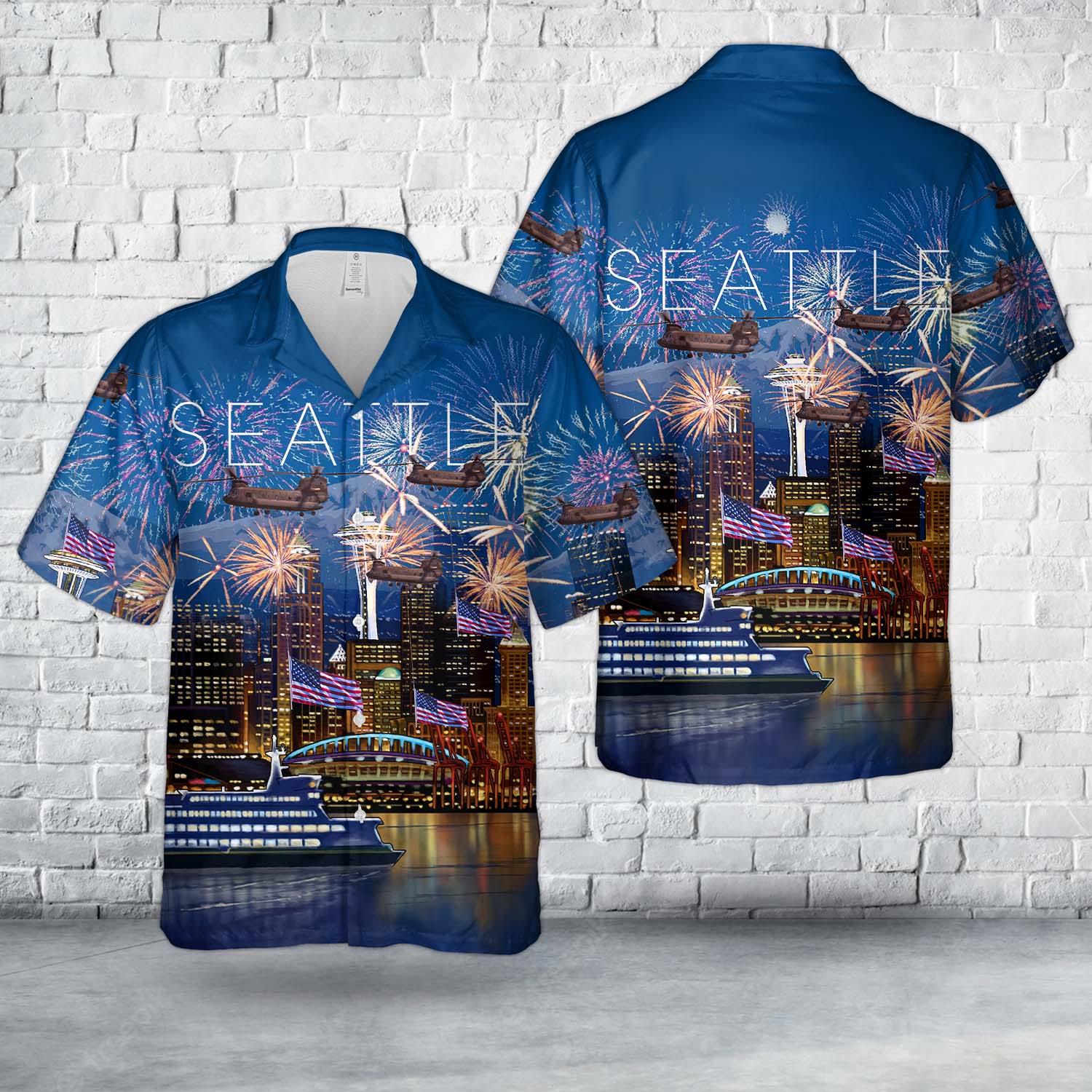 US Army CH-47 Chinook from 1-168th GSAB, Washington Army National Guard, 4th of July Hawaiian Shirt