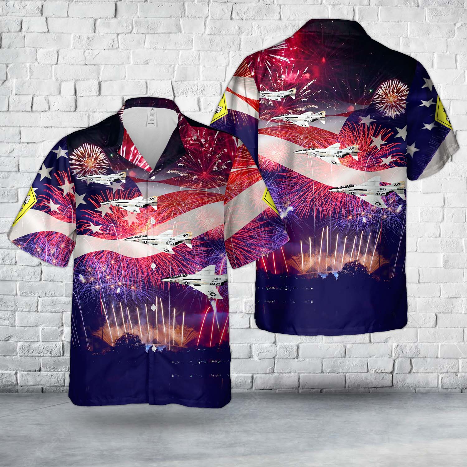 U.S. Navy McDonnell Douglas F-4J Phantom II Of VF-142 the Ghostriders, 4th Of July Hawaiian Shirt