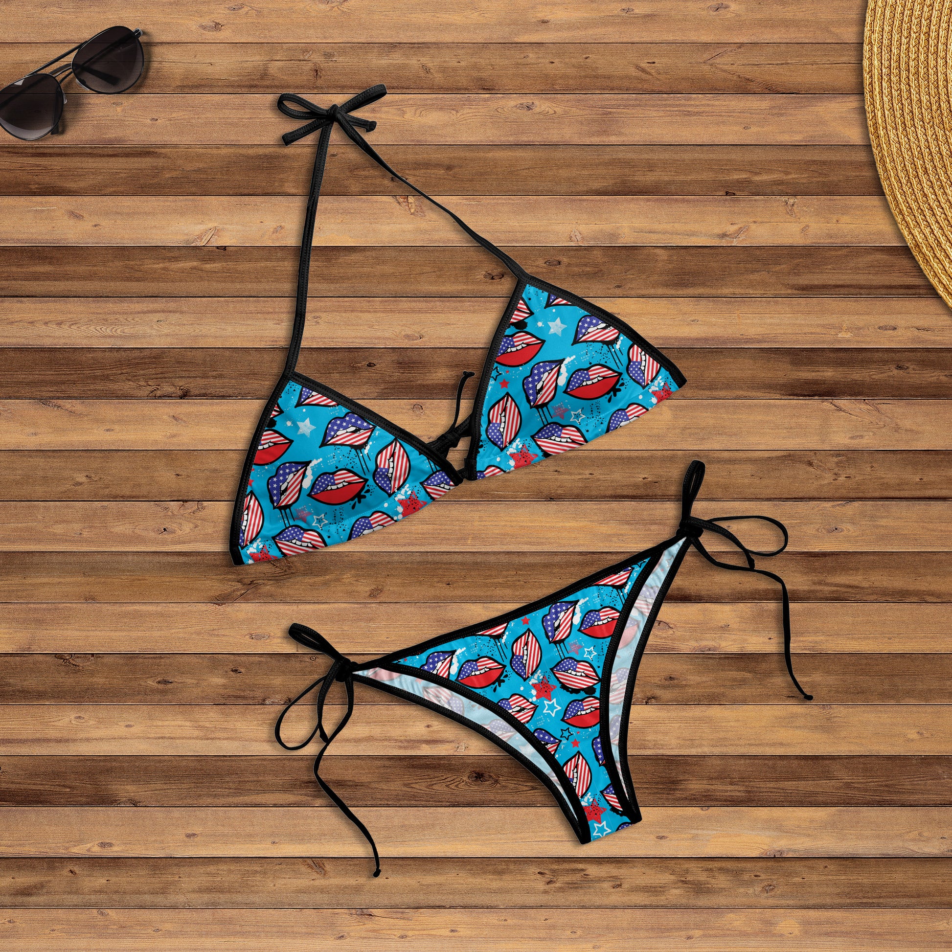 American Pattern With Lips AOP String Bikini