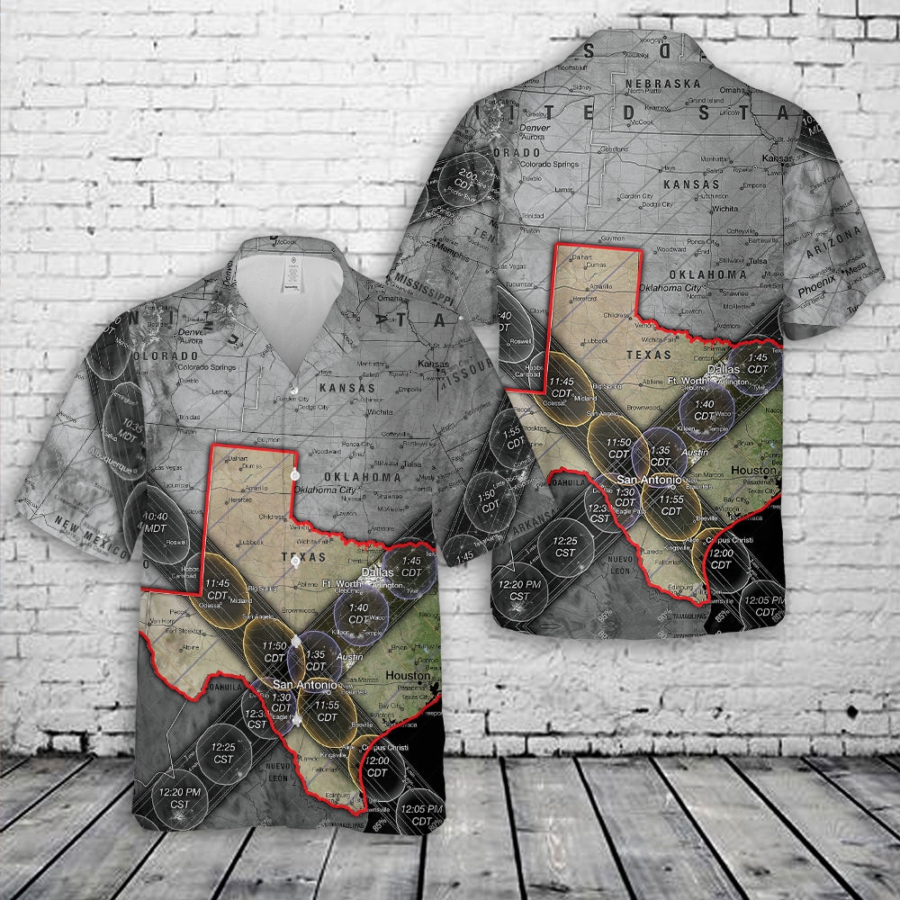 Texas Cities 2024 Total Solar Eclipse Hawaiian Shirt