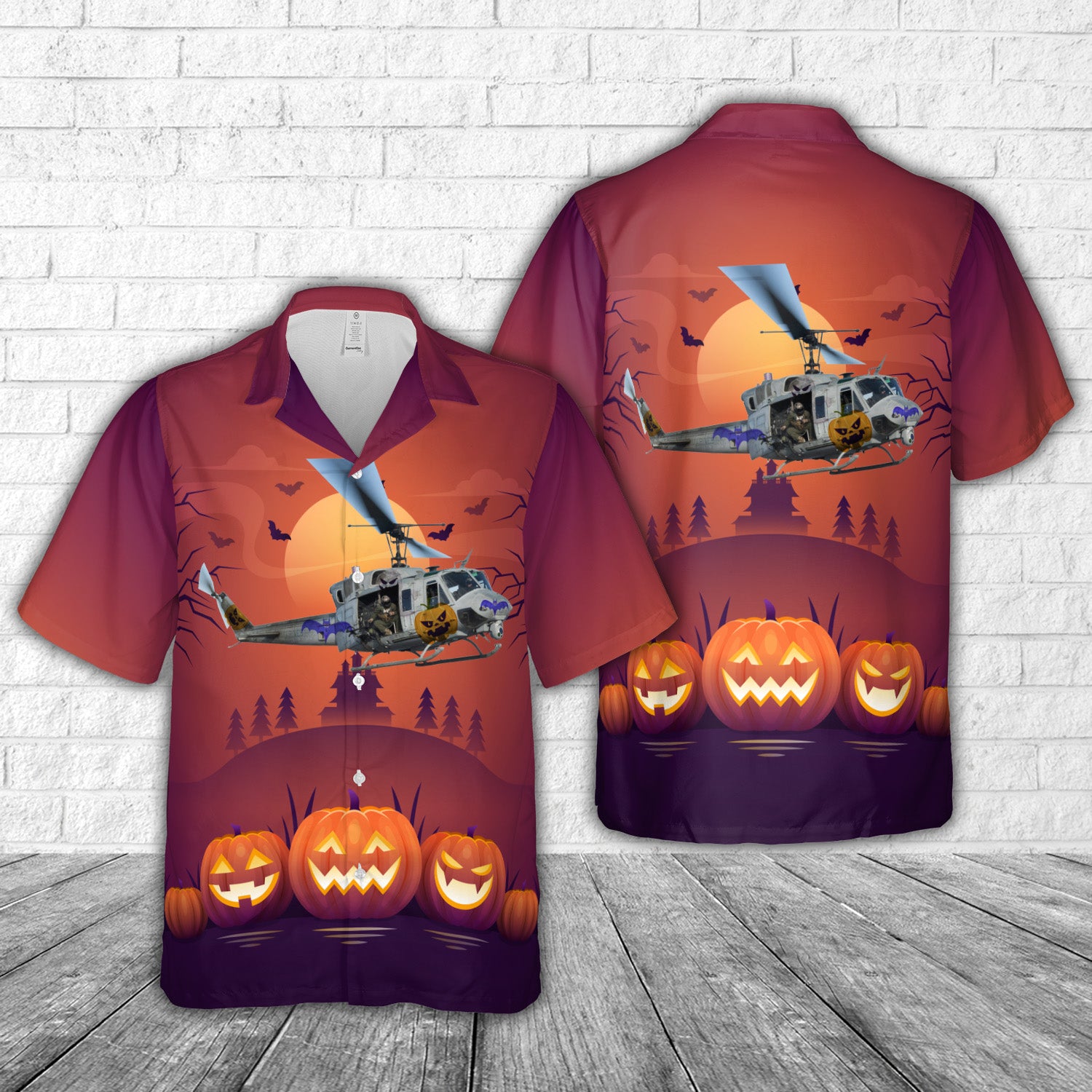 Bell UH-1N Twin Huey Halloween Hawaiian Shirt
