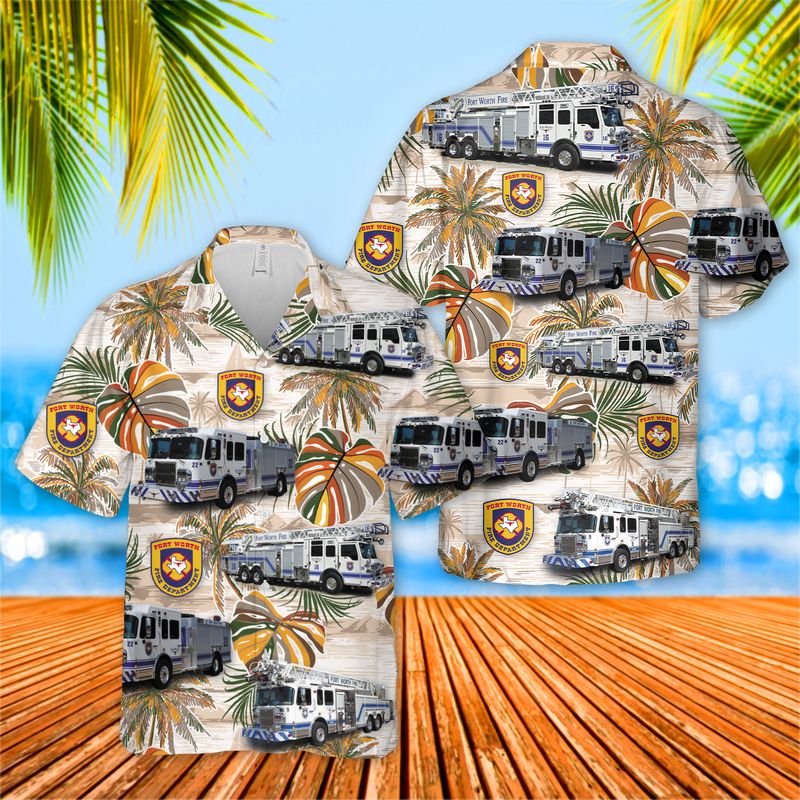 Fire Dept Fort Worth Texas Firefighter Emergency Service Hawaiian Shirt