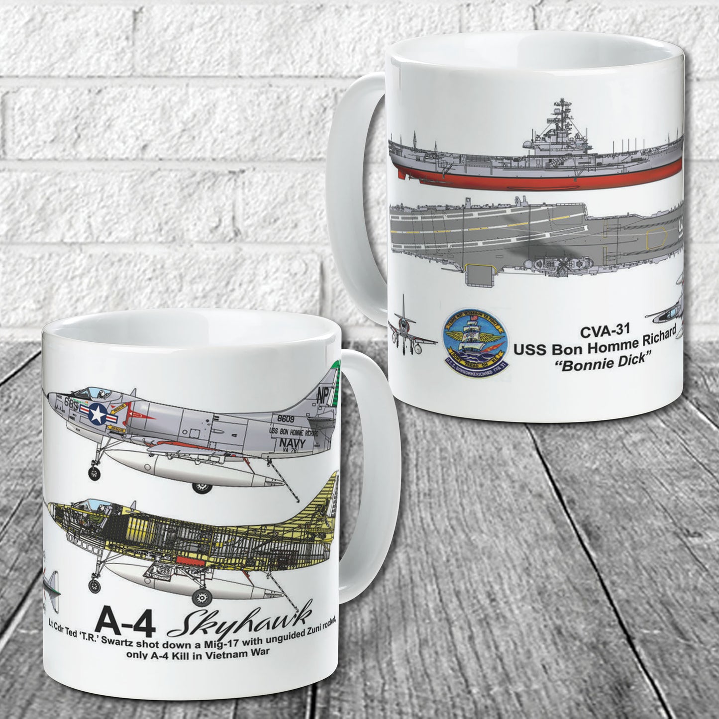 US Navy A-4 Skyhawk-CVA-31 USS Bon Homme Richard Ceramic Mug (11oz) (Made In US)